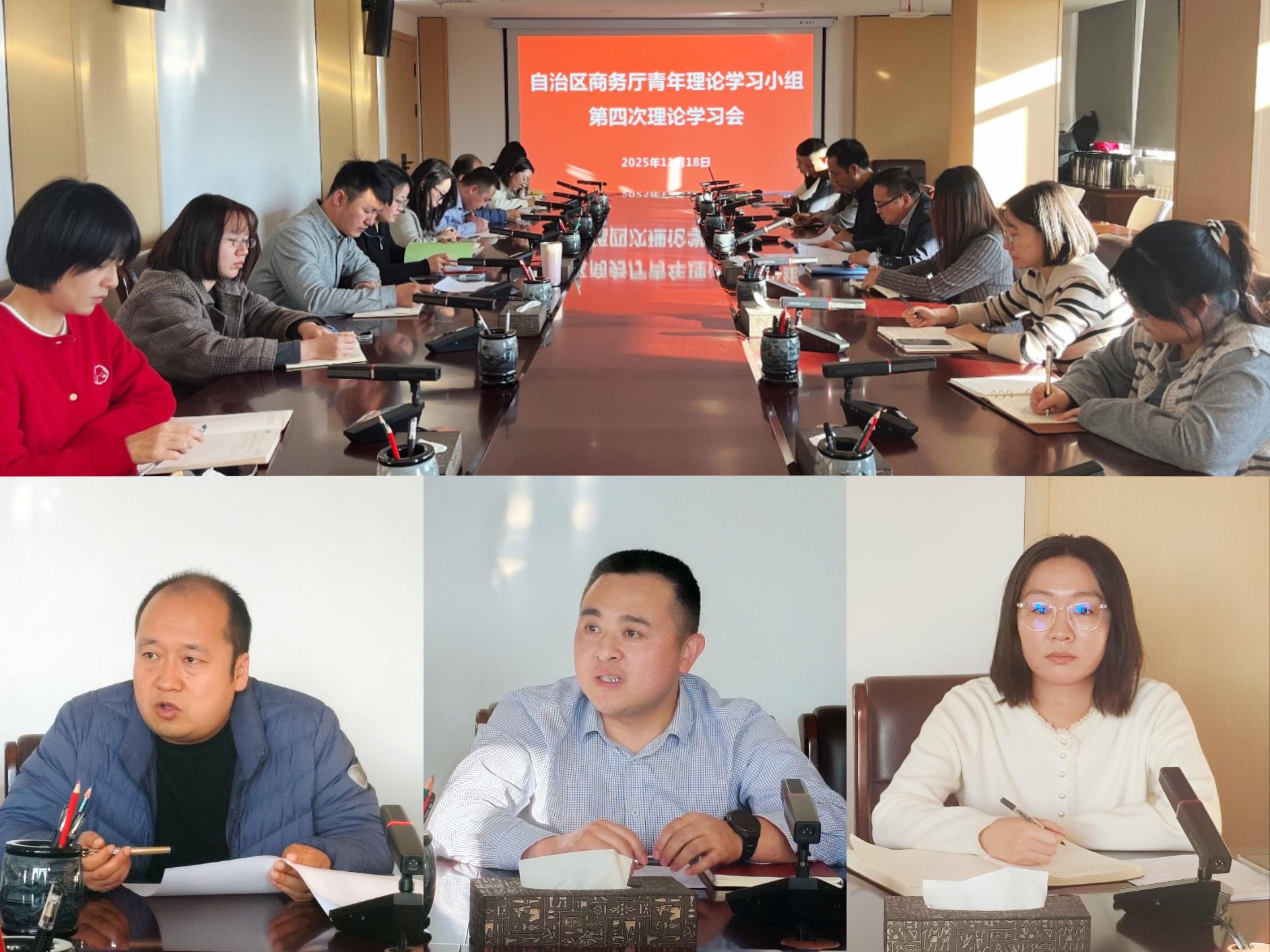近日,自治區(qū)商務廳召開青年理論學習小組第四次集體學習會議,傳達學習黨的二十屆四中全會精神、《習近平談治國理政》第五卷相關內(nèi)容及自治區(qū)黨委十三屆十一次全會精神,青年干部代表結合學習內(nèi)容和工作實踐交流發(fā)言。